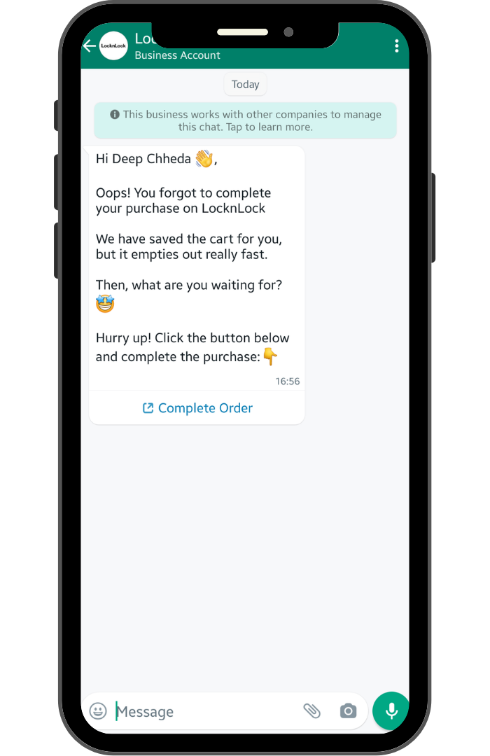 Because abandoned carts are every business owner's worst nightmare, Alpha Marketer instantly used WhatsApp Marketing to save LocknLock from this loss.