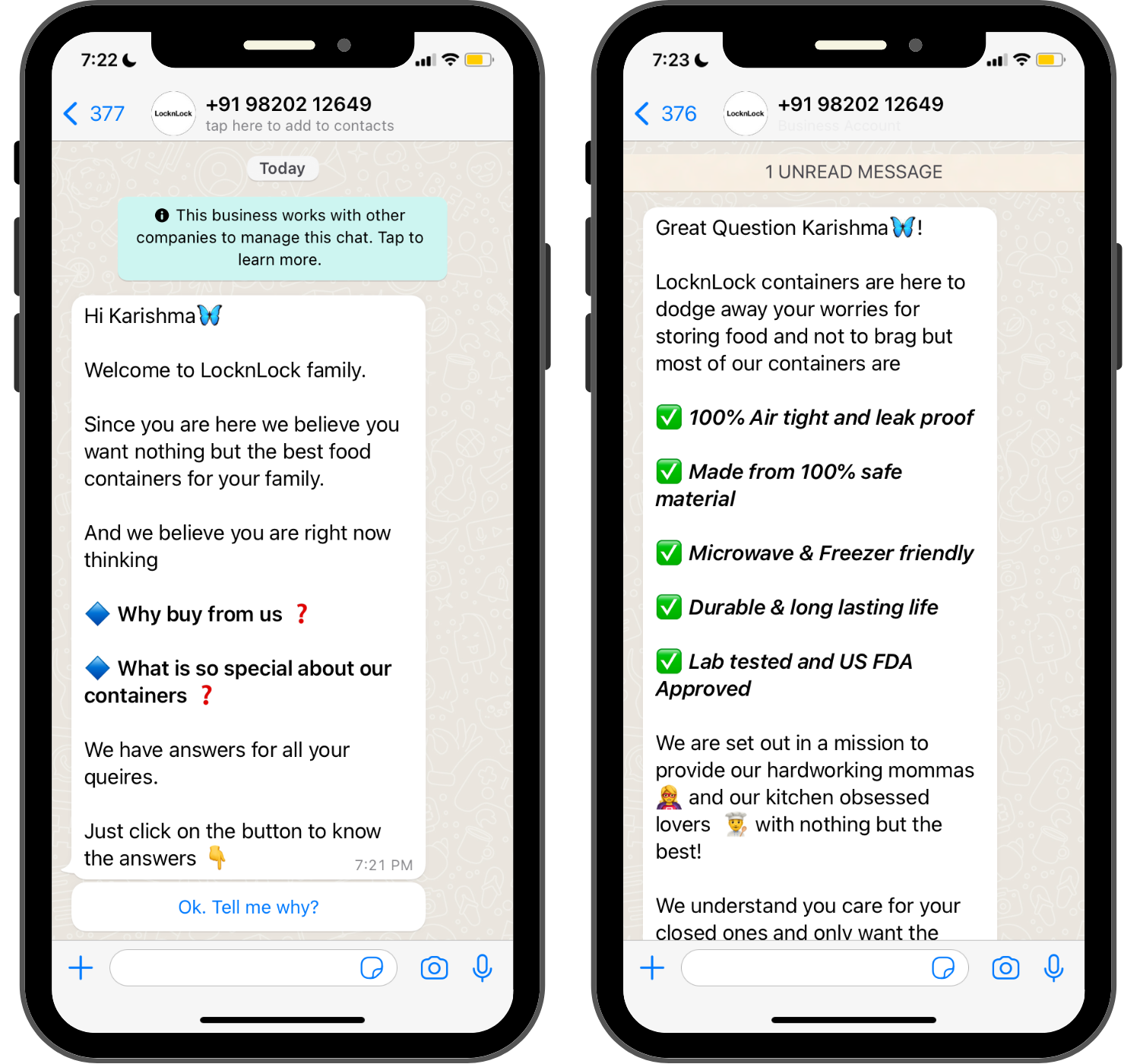 By now, it's understood that WhatsApp Marketing has been a boon for LocknLock. If this wasn't convincing enough, it's time to take a look at real experiences of customers about their seamless and smooth buying journey with LocknLock.