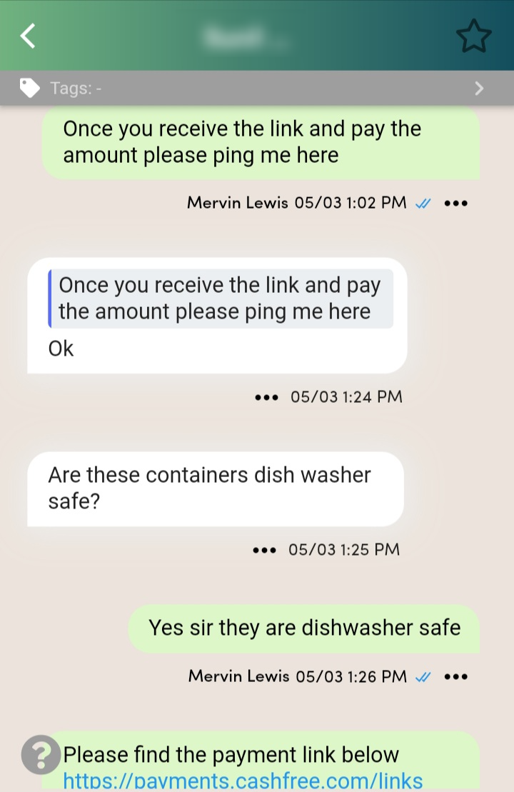 As you can see in the images above, WhatsApp gives your customers the opportunity to ask questions and doubts about the products and that's where the set-up customer service team or a chatbot can take over and easily resolve these queries, thus making the buying hassle free and doubt free for the customers!